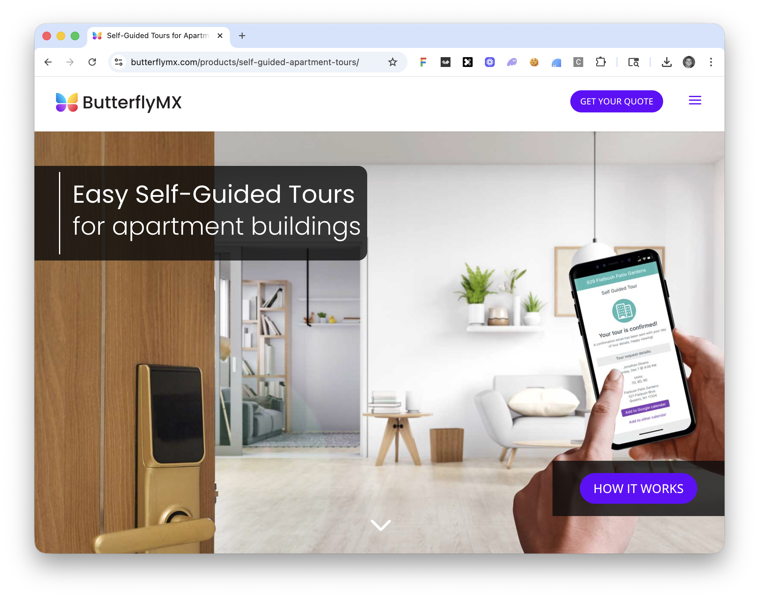 ButterflyMX focuses on secure access control and integrates with touring workflows and AI assistants. If you already use ButterflyMX for intercom/access, adding self-guided can be straightforward.