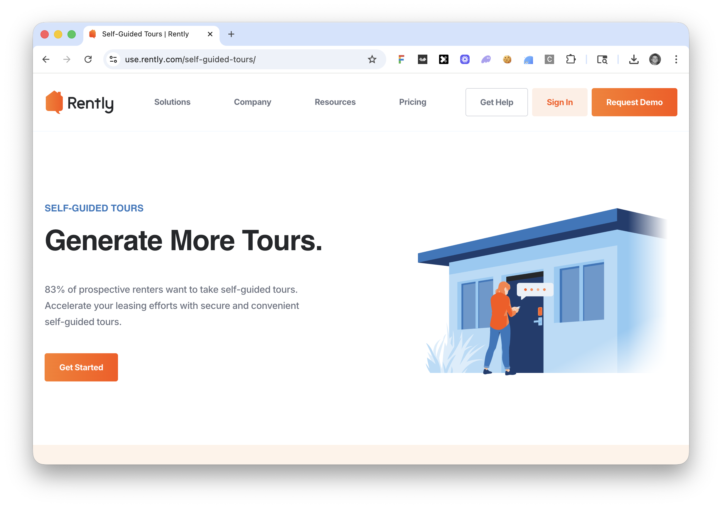 A long-time player serving single-family and multifamily, Rently automates the self-tour workflow—scheduling, confirmations, post-tour feedback, and screening. They highlight that a big chunk of tours happen outside standard hours—one of the key reasons teams adopt self-guided in the first place.